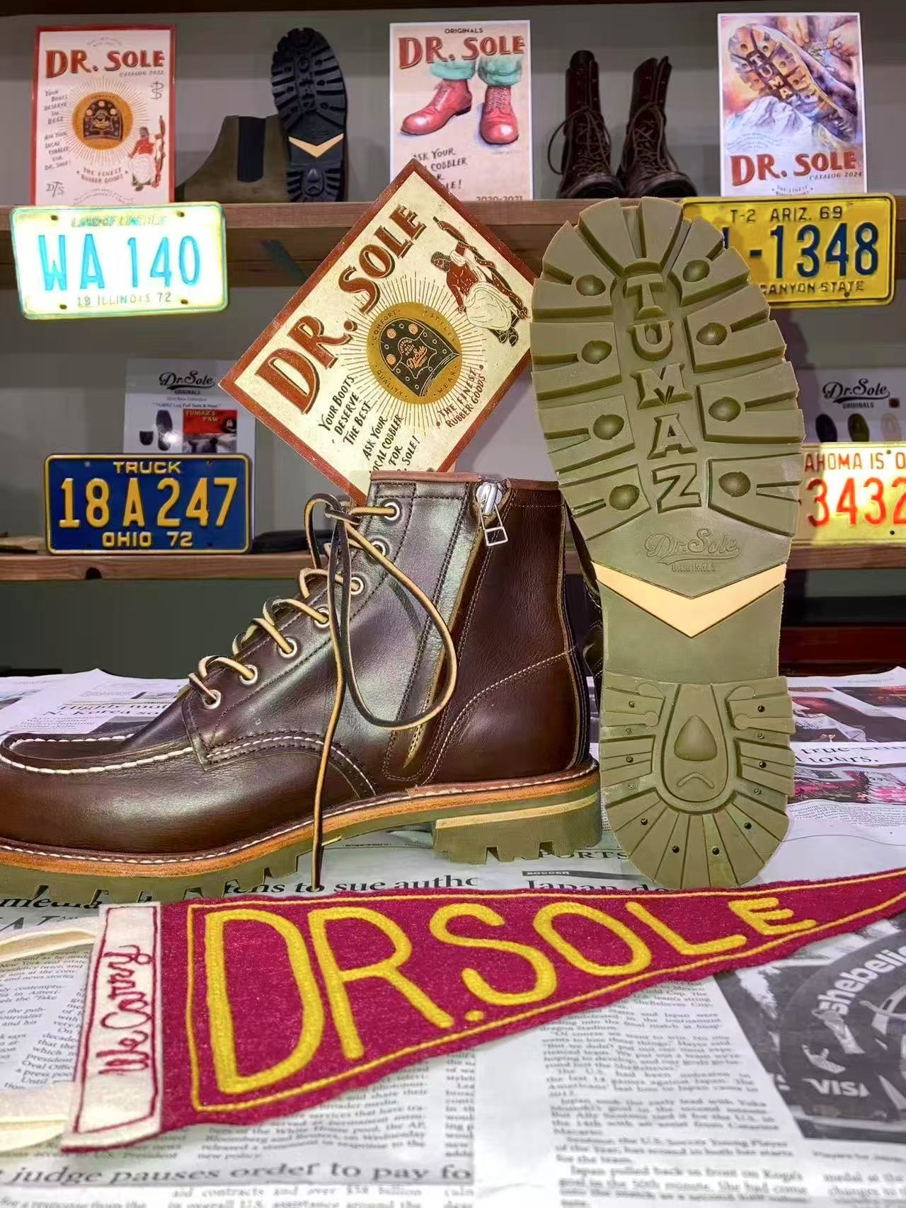 Dr. Sole's very first lug soles - Tumaz. Those are heels of them. The inspiration is taken from the most representative wildlife of Taiwan - the Formosan Black Bear. One of the Taiwanese native tribes call them “Tumaz,” which is the origin of the name of these soles.